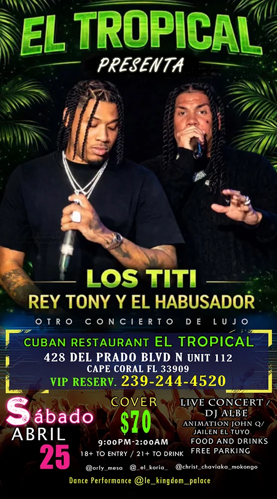 Este evento promete ser uno de los más comentados en Cape Coral, reuniendo a todos los que saben de buena música y de fiesta de verdad. No te quedes fuera de esta experiencia única donde la calle, la música y la vibra se juntan en un solo lugar.